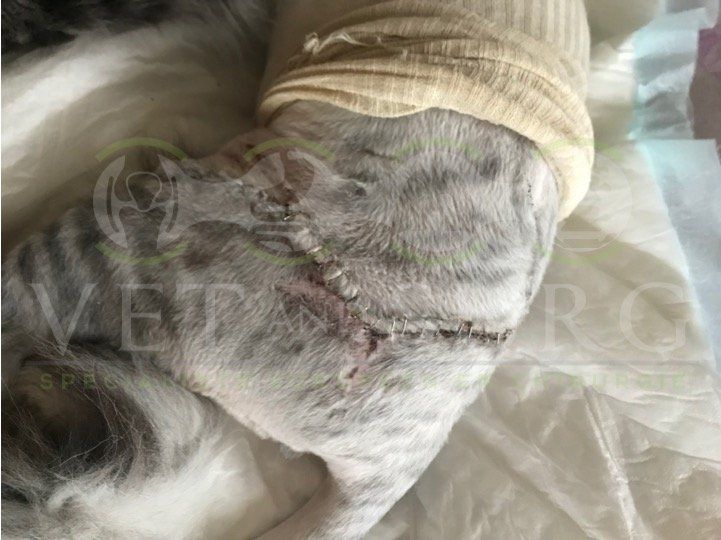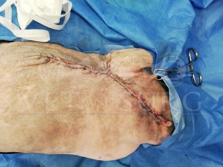 Une bullotomie ventrale droite puis gauche 1 mois après ont été réalisées.