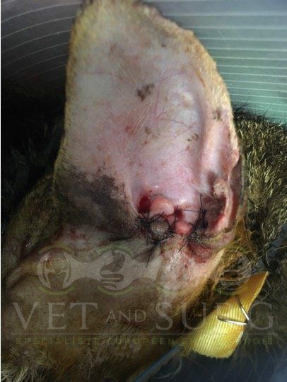 Polype auriculaire bilatéral chez un chat Européen de 9 ans