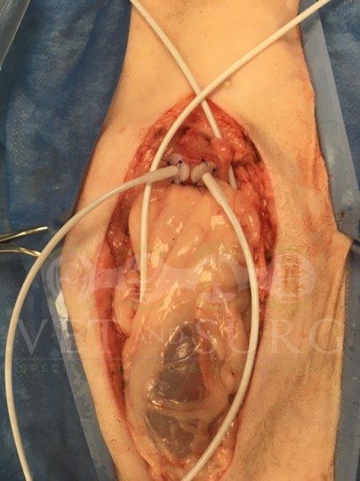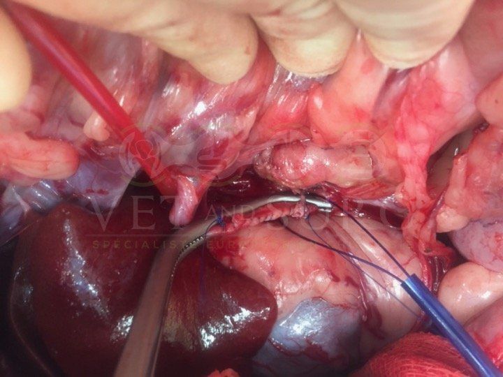 Une pose de SUB a été effectuée, reliant la cavité pyélique gauche à la vessie, en court-circuitant l'uretère obstrué.